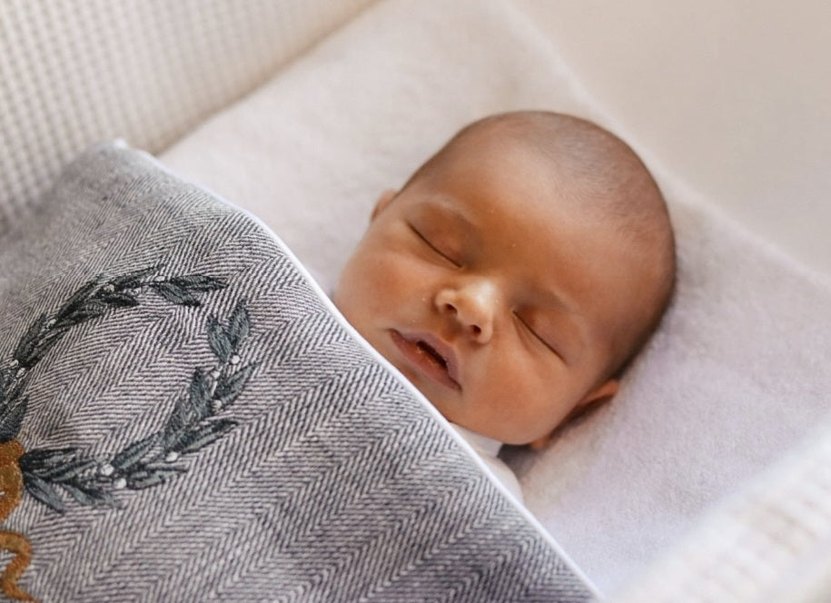 2pc Bassinet Sheet Set, Personalised Embroidery on Linen
