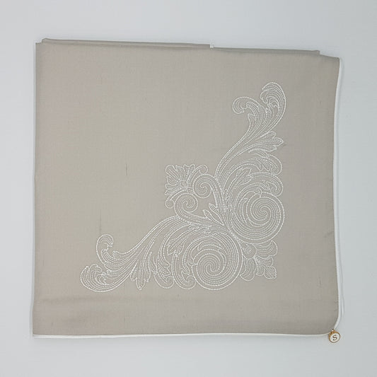Limited Edition Wrap and Pillowcase Set, Soft Grey Silk with Cream Embroidery