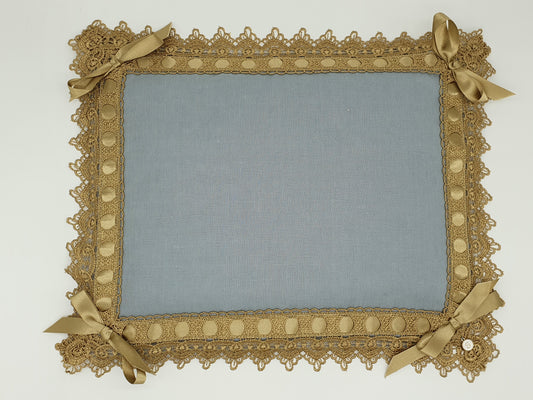Limited Edition Linen Wrap & Pillowcase Set, Duck Egg Blue with Gold