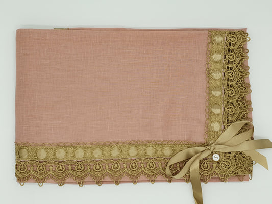Limited Edition Linen Wrap & Pillowcase Set, Vintage Rose with Gold