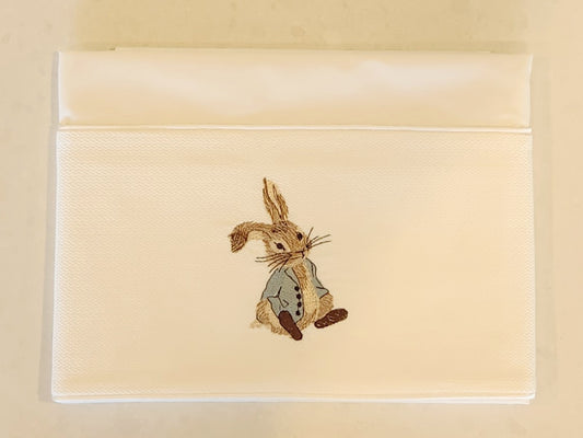 'Solemn Peter' 2pc Bassinet Sheet Set, embroidered Peter Rabbit on Ivory Sheets