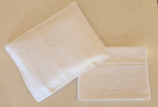 'Simply Elegant' 2pc Bassinet/Pram Sheet Set, White Linen with embroidered floral monogram