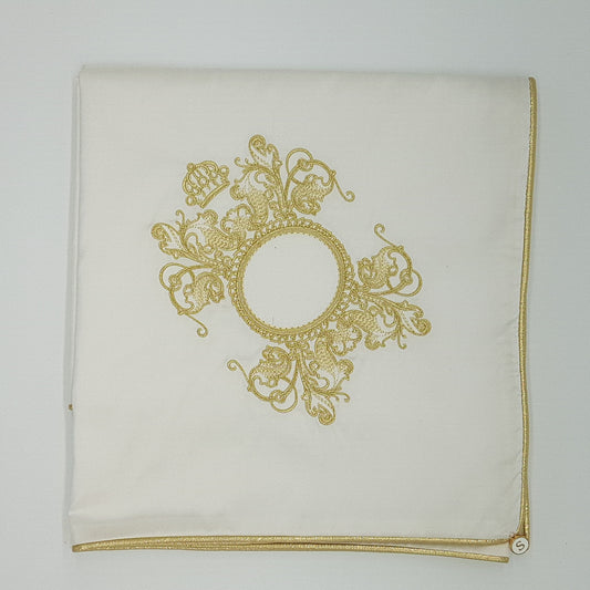 'The Crown is Hers' Embroidered Wrap & Pillowcase Set, Gold on White Silk