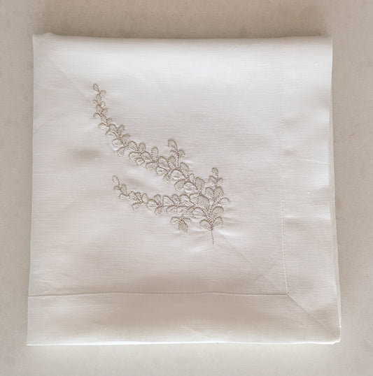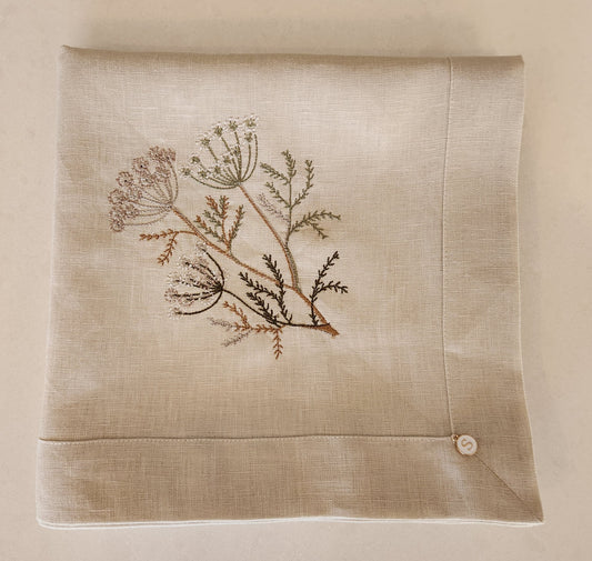Exclusive Baby Wrap & Pillowcase Set, Natural Linen with embroidered ferns