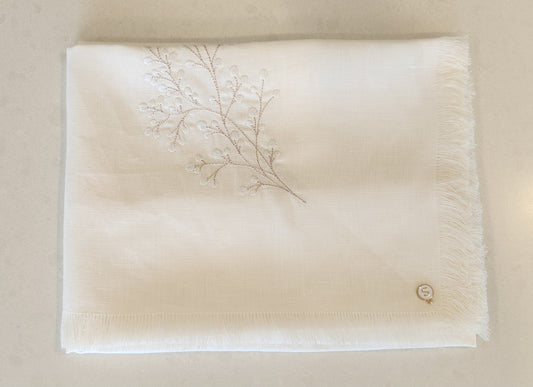 Exclusive Baby Wrap & Pillowcase Set, Natural Linen with embroidered Floral Branch