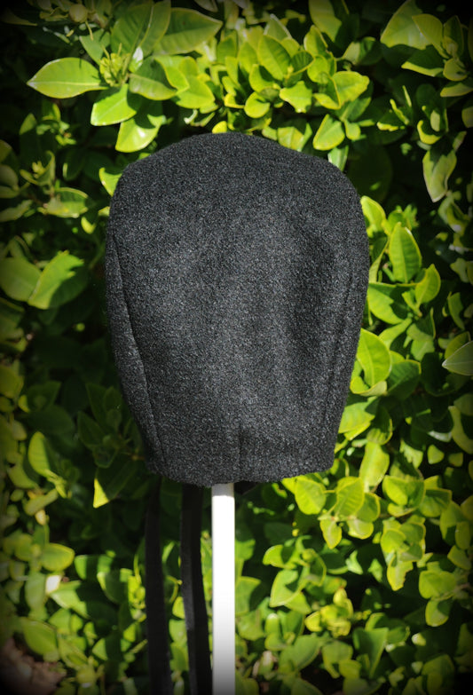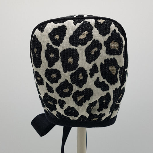 Exclusive Bonnet, Black Spot Brocade with frill & trim