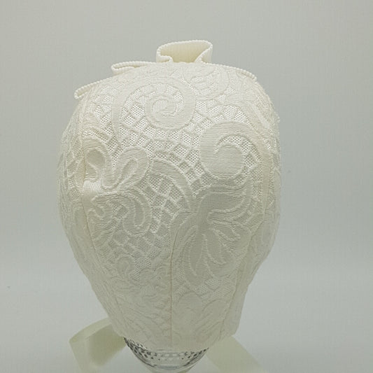 Exclusive Bonnet, Cream Brocade, cap style with pleated frill