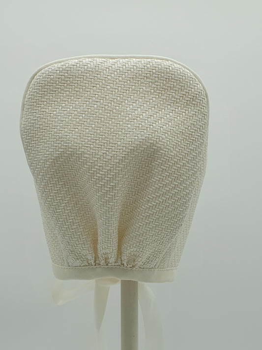 Exclusive Bonnet, Cream Linen with Embroidered Cream Wreath
