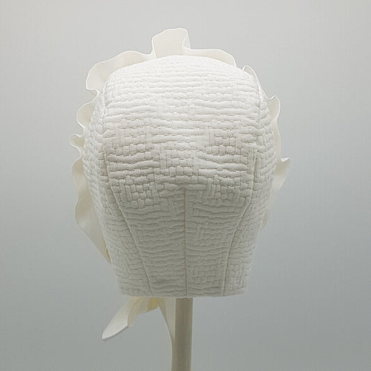 Exclusive Bonnet, Ivory Jacquard Cap Style with frill and bead trimRegular price $55.00 AUDRegular priceUnit price per-