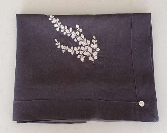Exclusive Linen Wrap & Pillowcase Set, Gravel Linen with Ivory embroidered vine