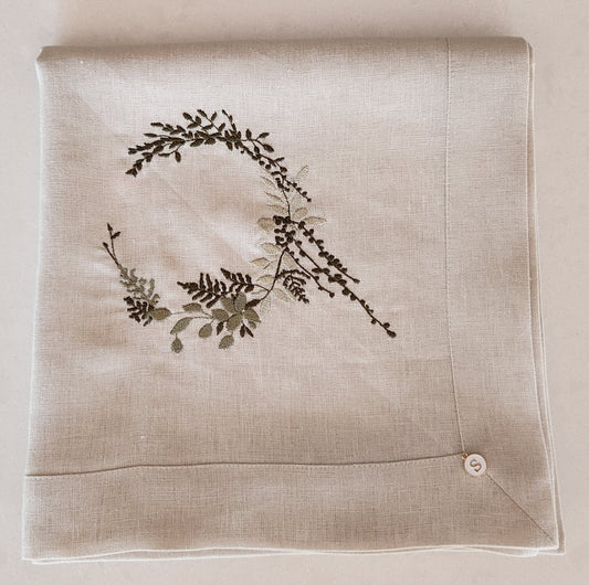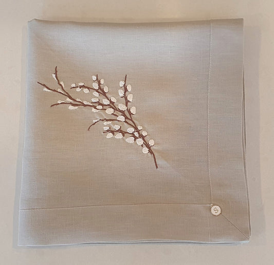 Exclusive Linen Wrap & Pillowcase Set, Natural Linen with Ivory embroidered Pussy Willow Branch