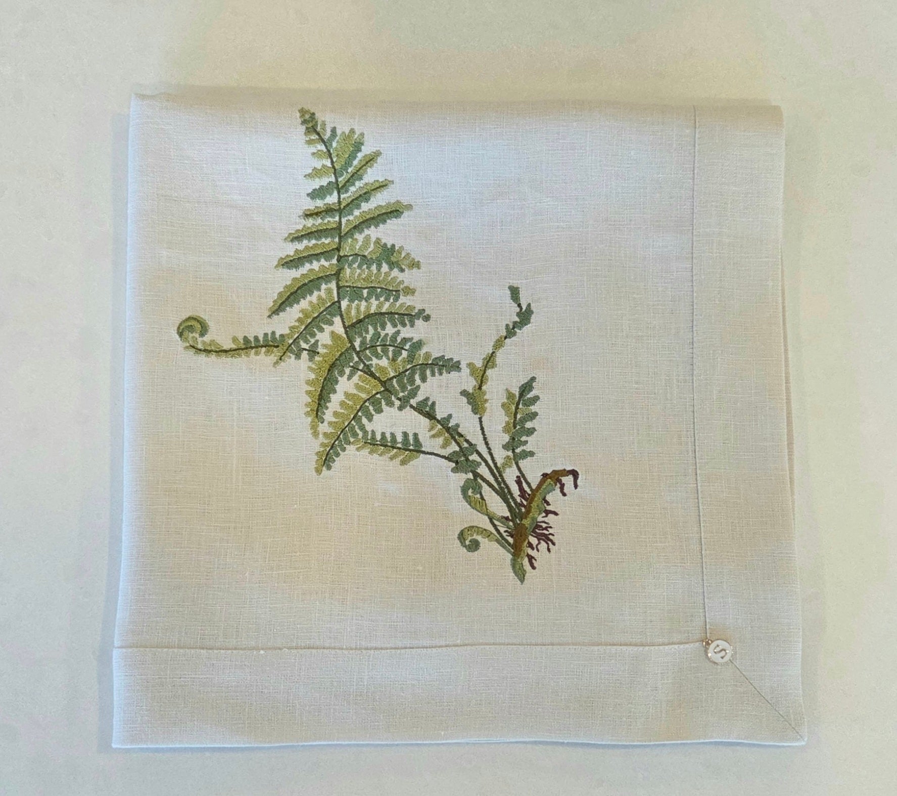 Exclusive Baby Wrap & Pillowcase Set, Natural Linen with embroidered ferns