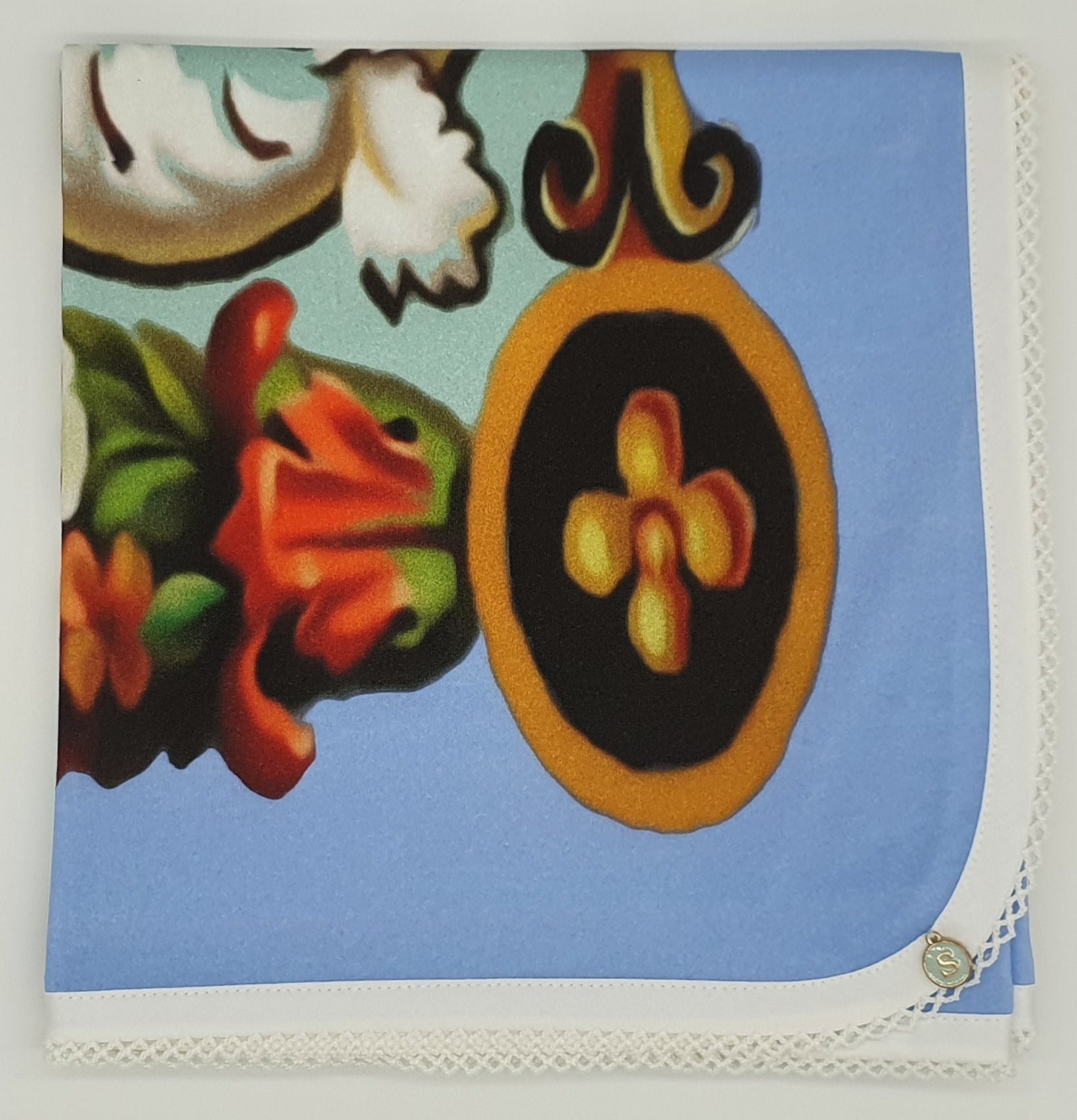 Soft Organic Cotton Baby Wrap trimmed with picot edge binding.