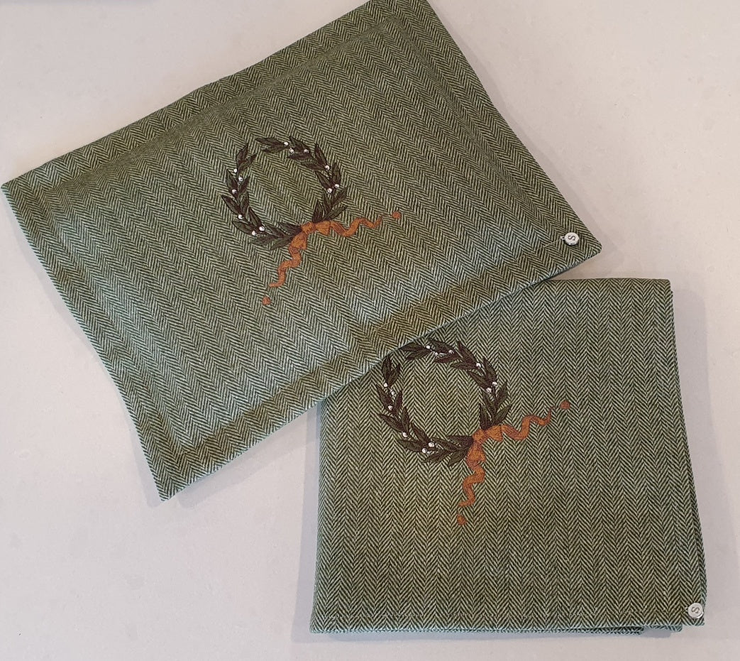 'Forest Glades' Herringbone Embroidered Wrap & Pillowcase Set